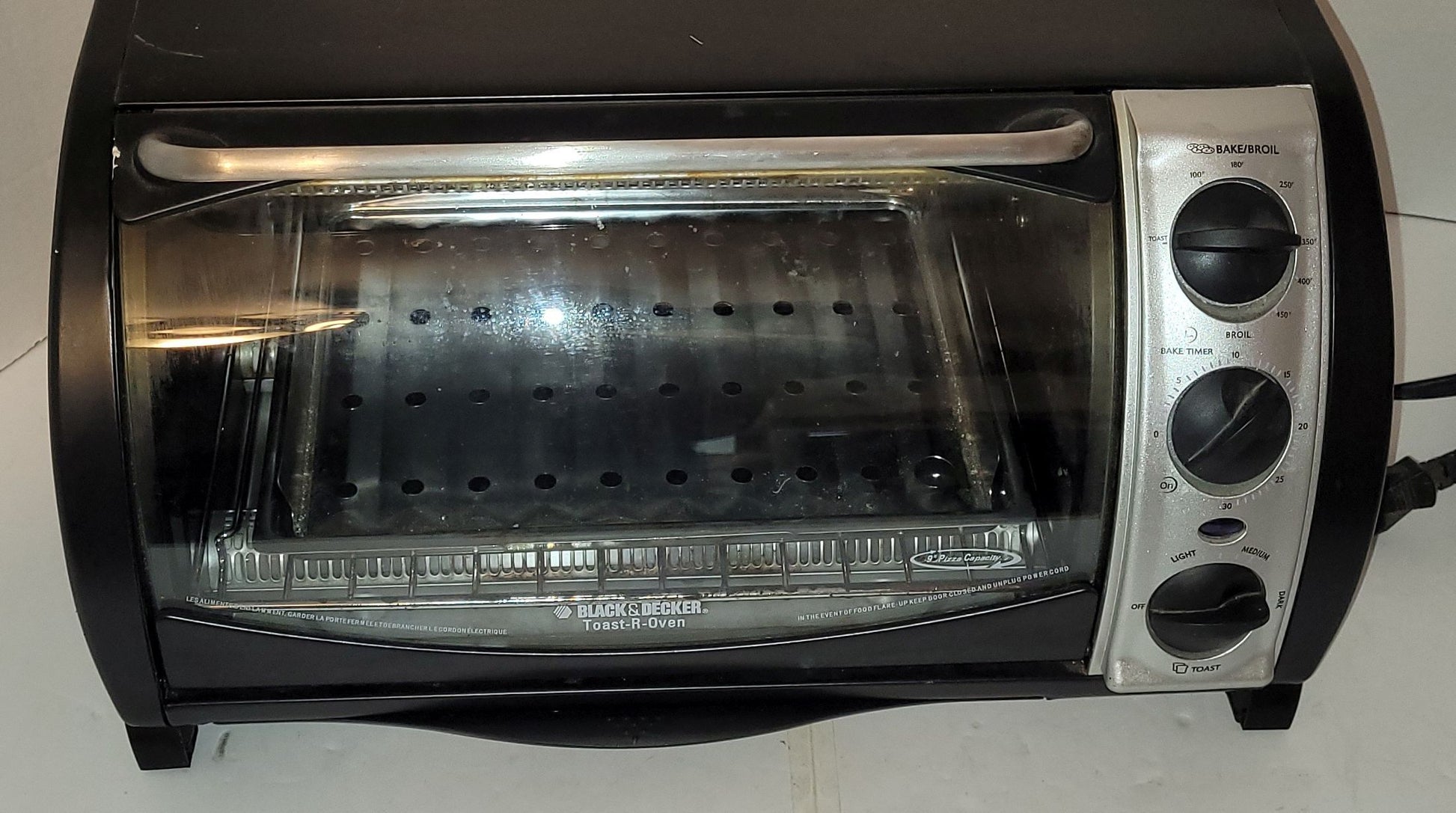 Four de comptoir de marque Black N'Decker. Puissance de 1350 watts. Température de cuisson maximale : 450 °F.