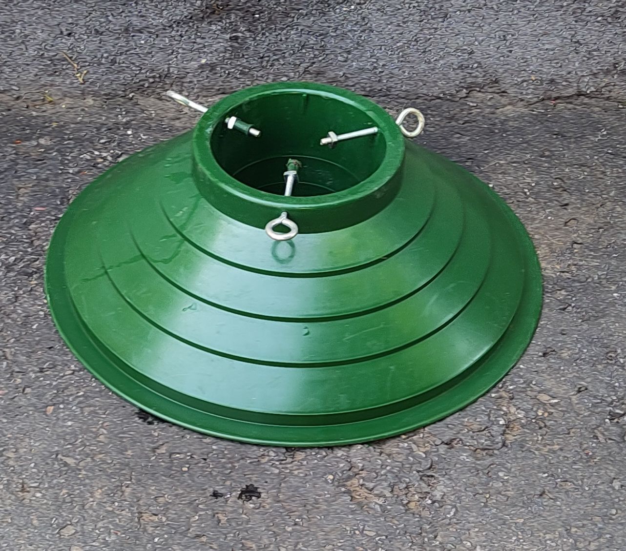 Pied rond en plastique pour sapin naturel. Mesure 18'' de diamètre. Convient aux tronc d'arbre de 3'' à 5''.