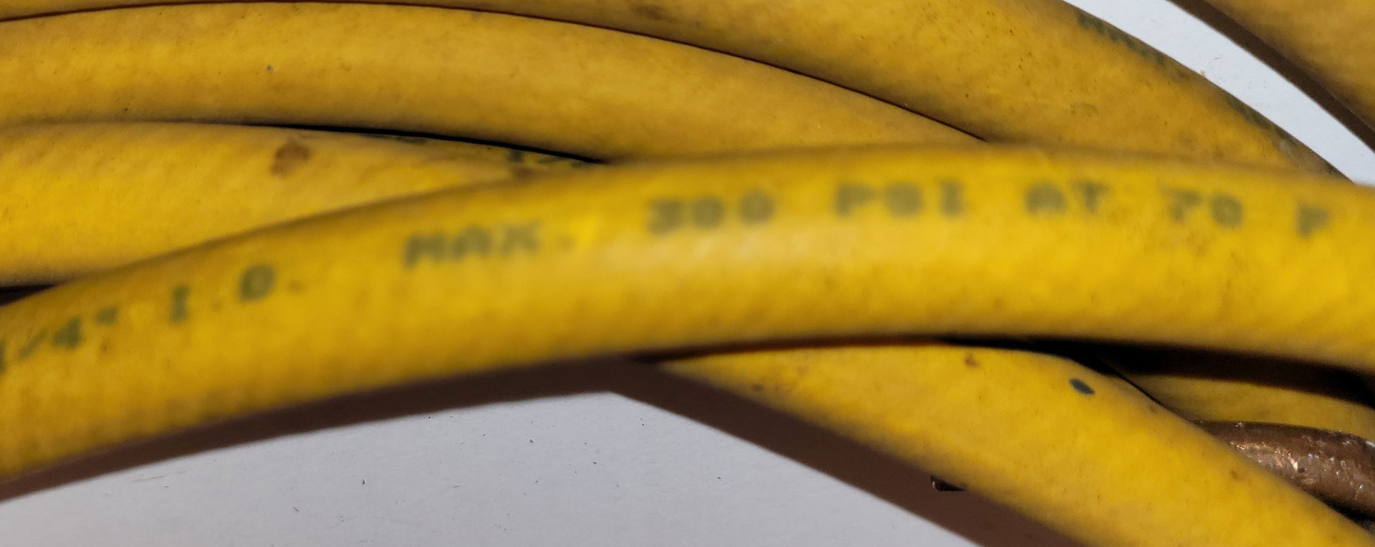 Tuyau 1/4 pour compresseur à air. Mesure 25' de long.