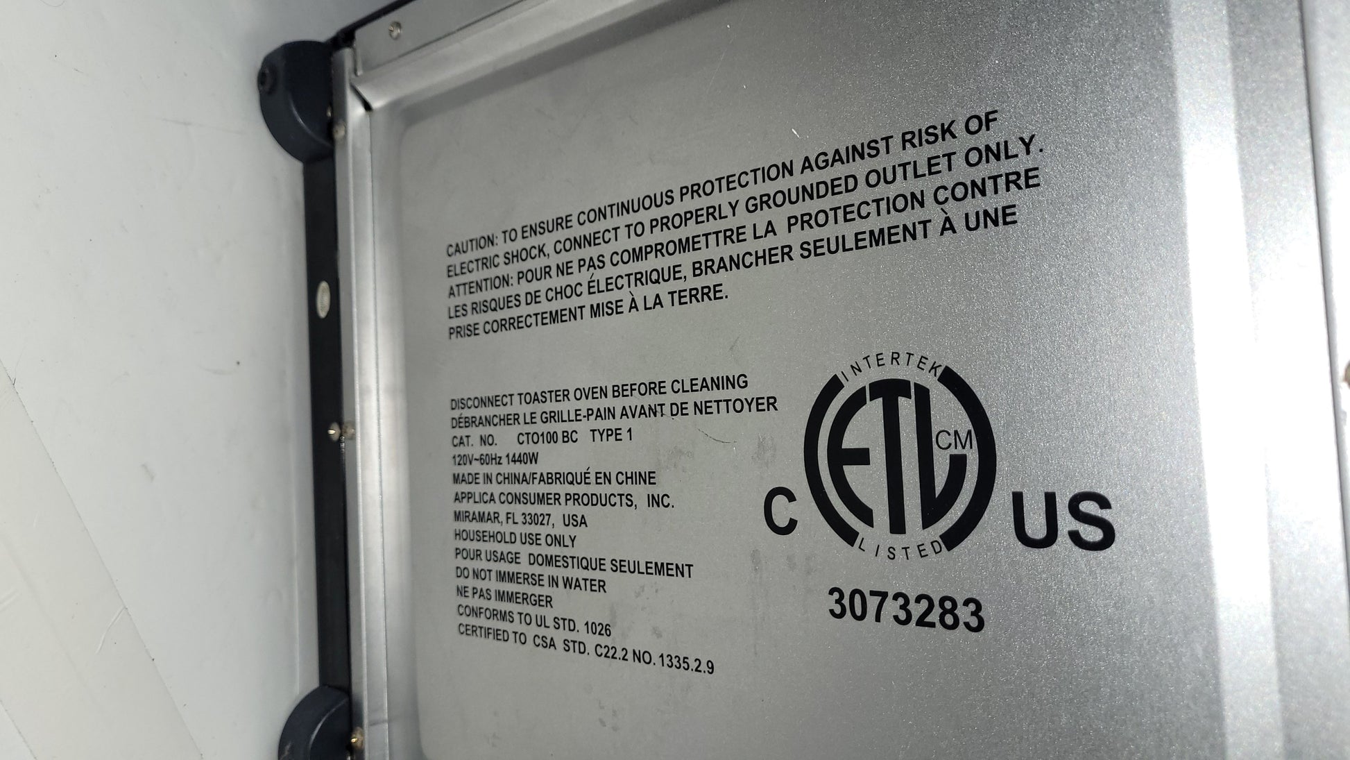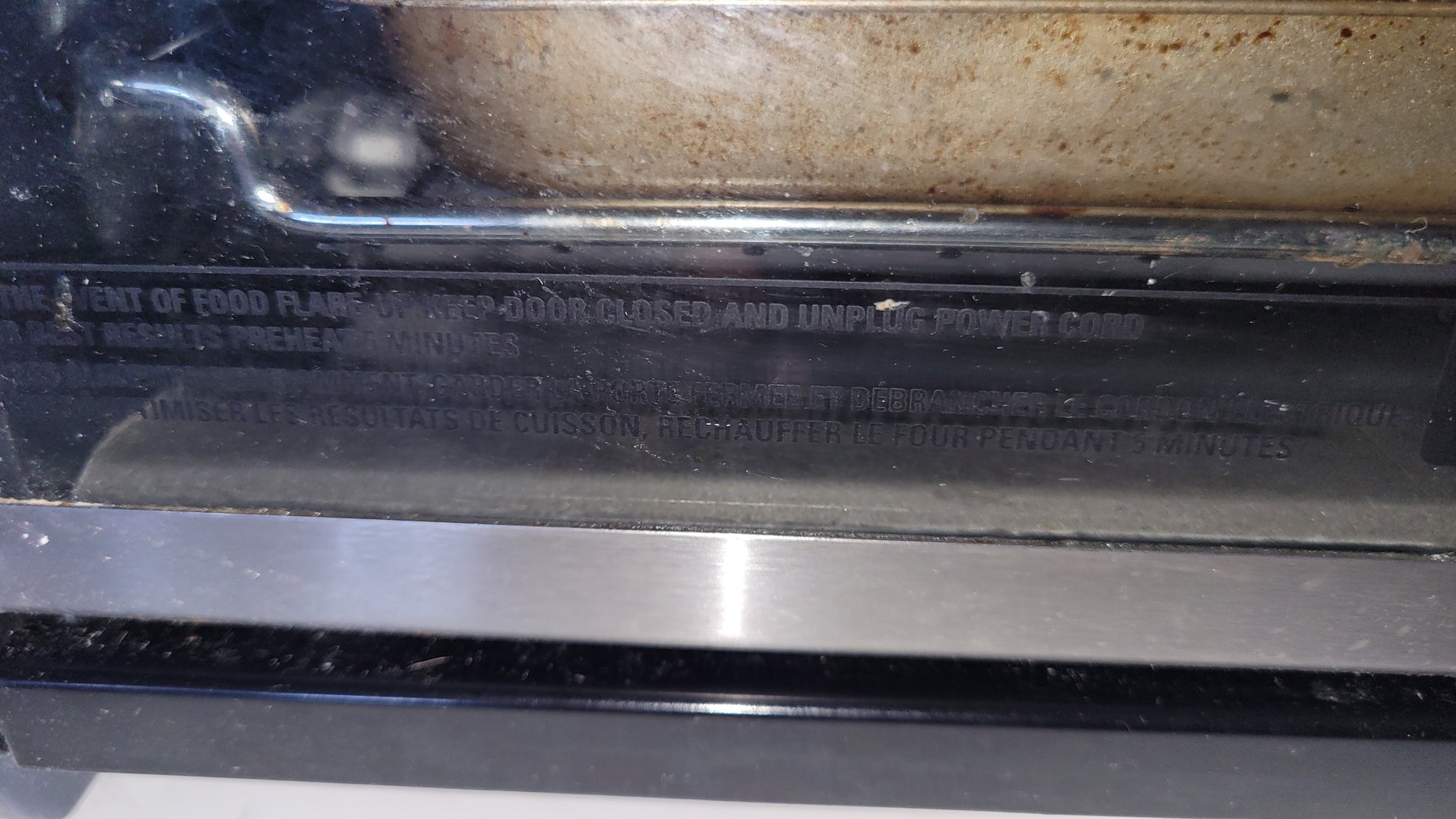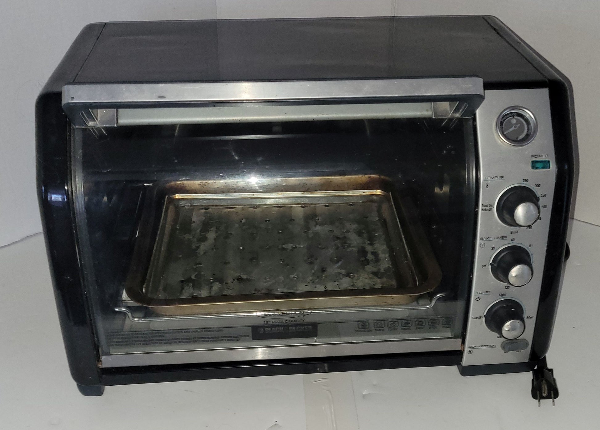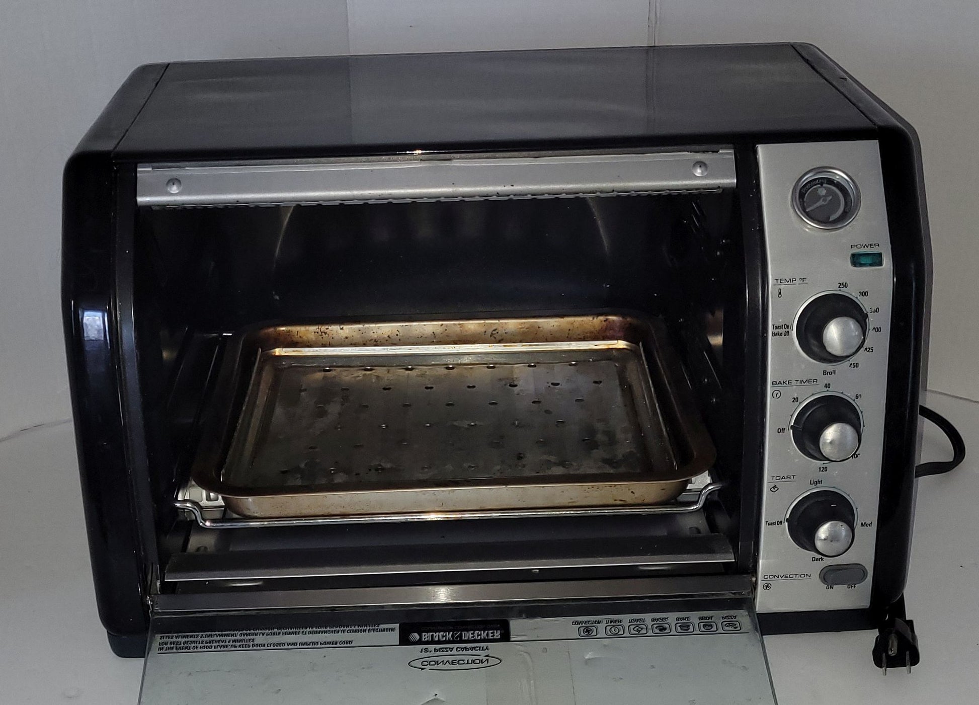 Four de comptoir avec convection de marque Black N'Decker. Puissance de 1350 watts. Température de cuisson maximale : 450 °F.