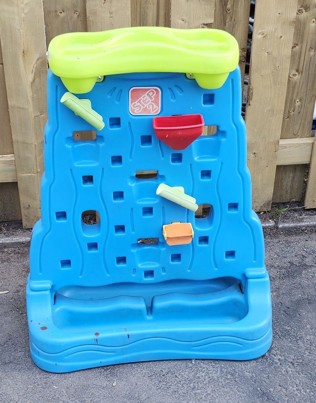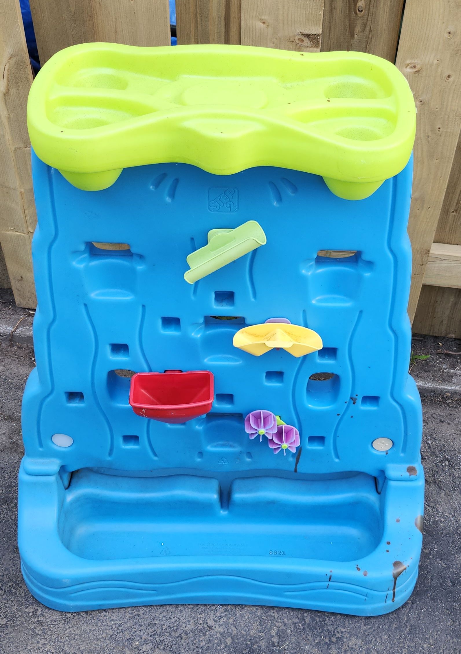 Table d'eau verticale de marque Step2. Elle vient avec les accessoires sur la photo. Convient aux enfants de 1 à 5 ans. Mesure 33'' x 28''