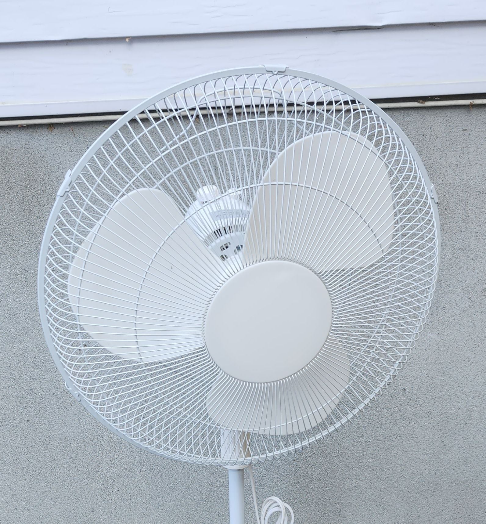 Ventilateur sur pied de marque Intertek. . La tête est rotative et mesure 16''. Elle a plusieurs intensités.