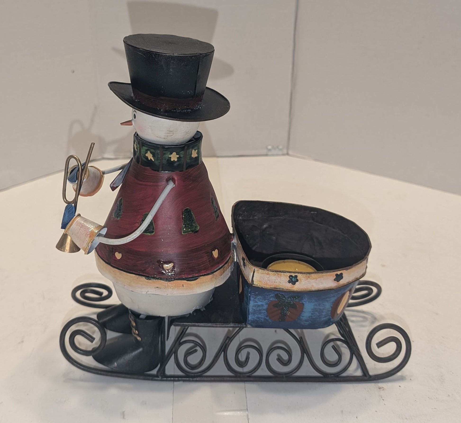Chandelier en traineau avec bonhomme de neige. Prends des chandelles lampions.