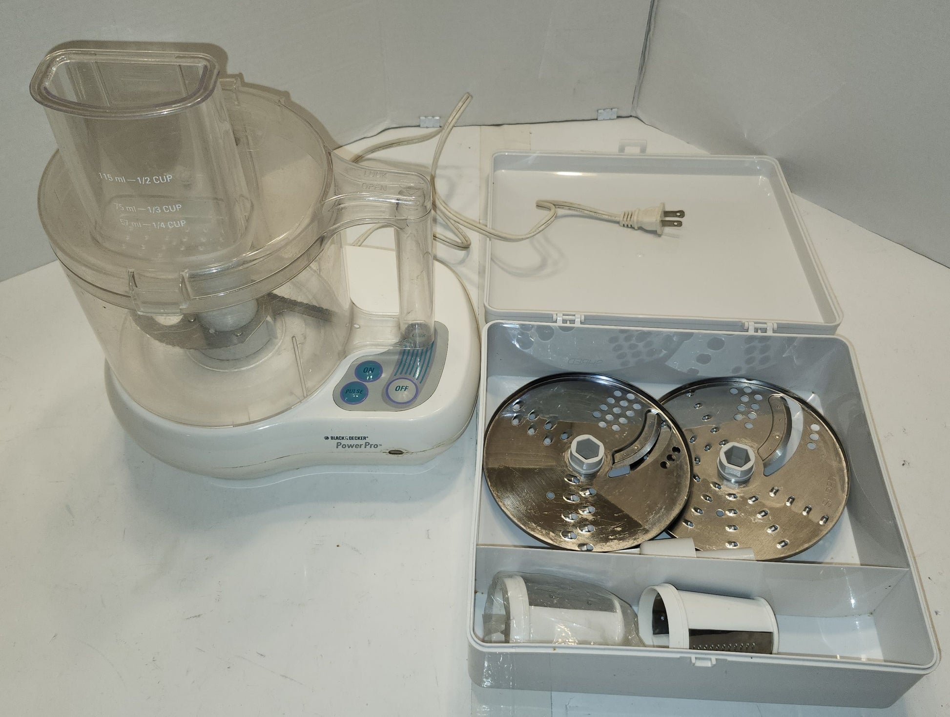 Robot culinaire de marque Black N'Decker modèle PowerPro FP1000. Vient avec plusieurs lames et accessoires. Capacité de 3 tasses (800 ml).