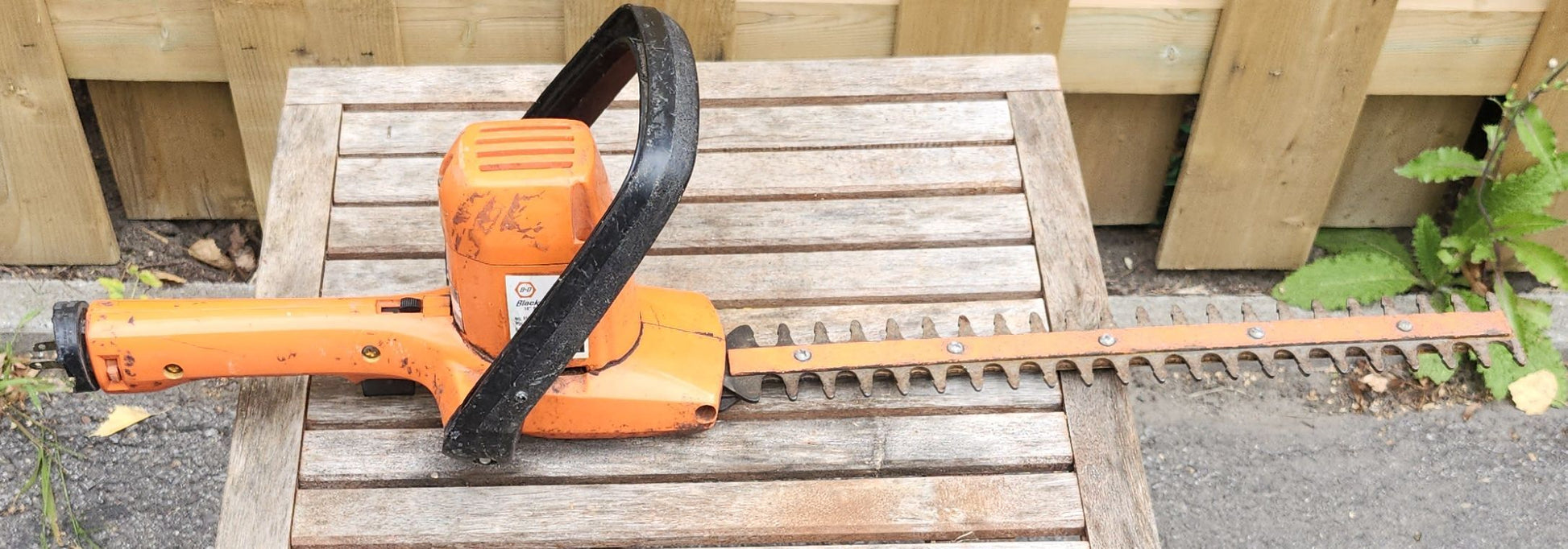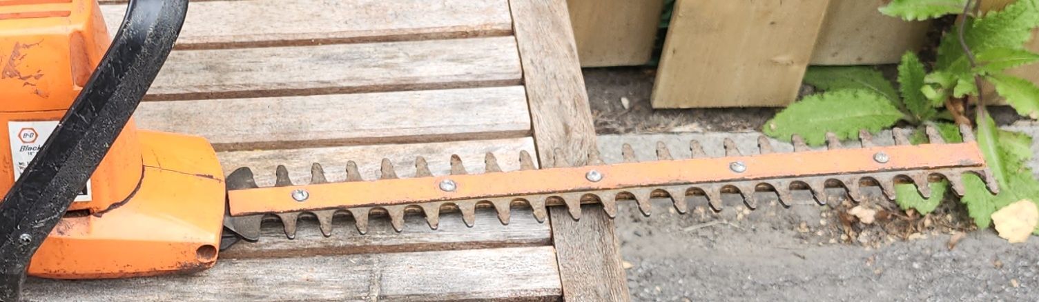 Taille haie électrique de marque Black N'Decker avec un lame en acier trempé double action de 16''.