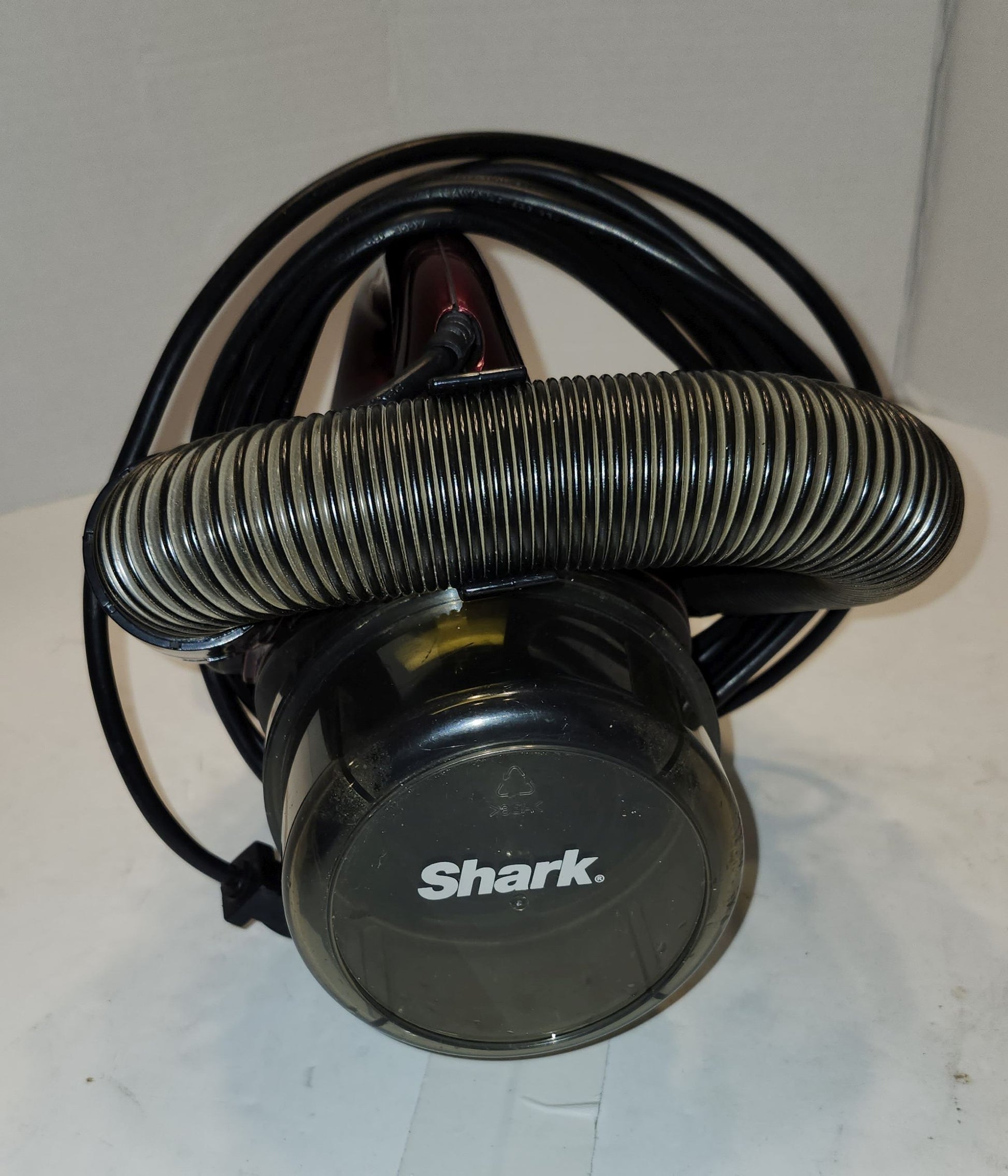Balayeuse portative de marque Shark. Se branche dans une prise standard. Facile à nettoyer.
