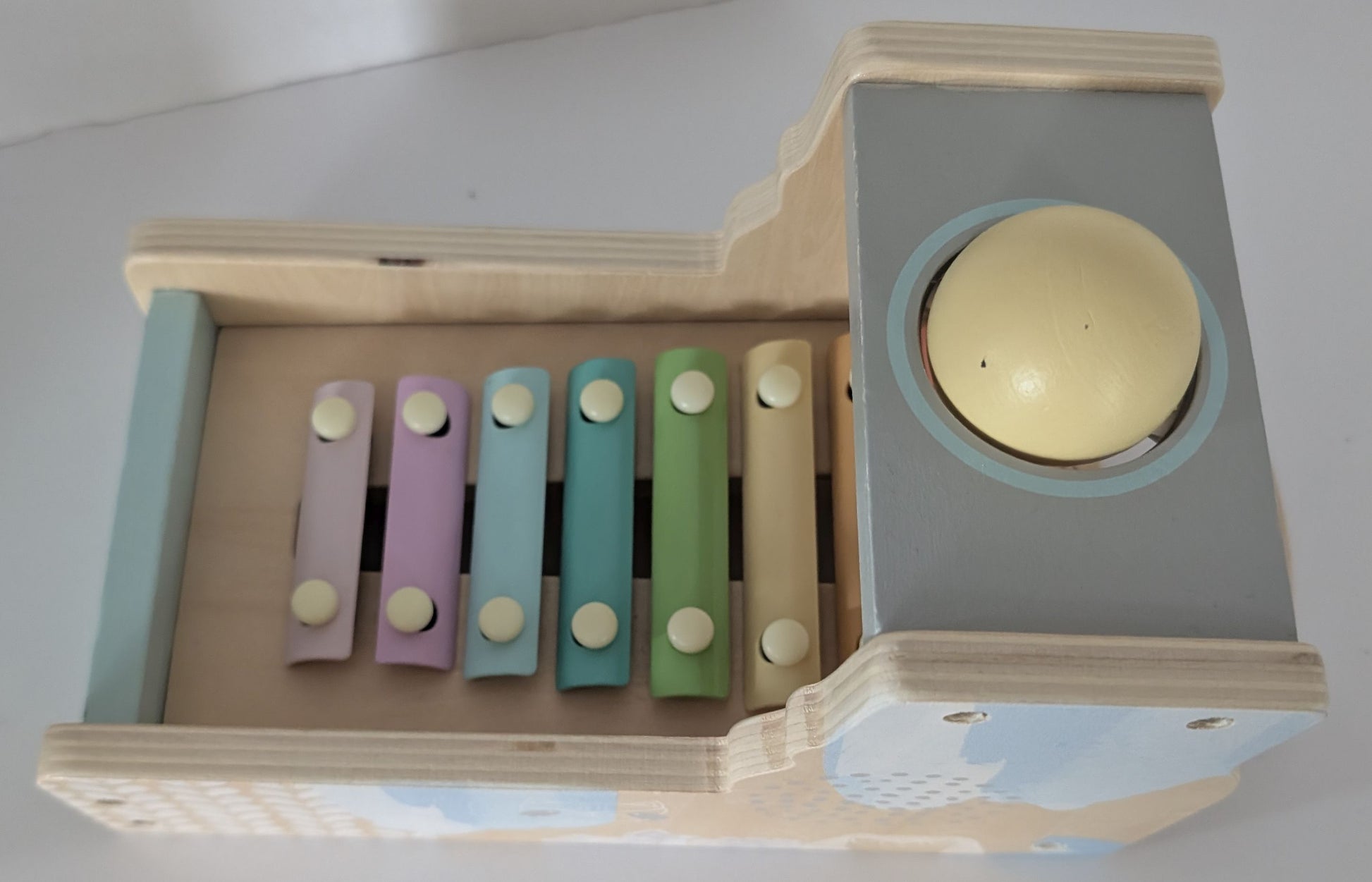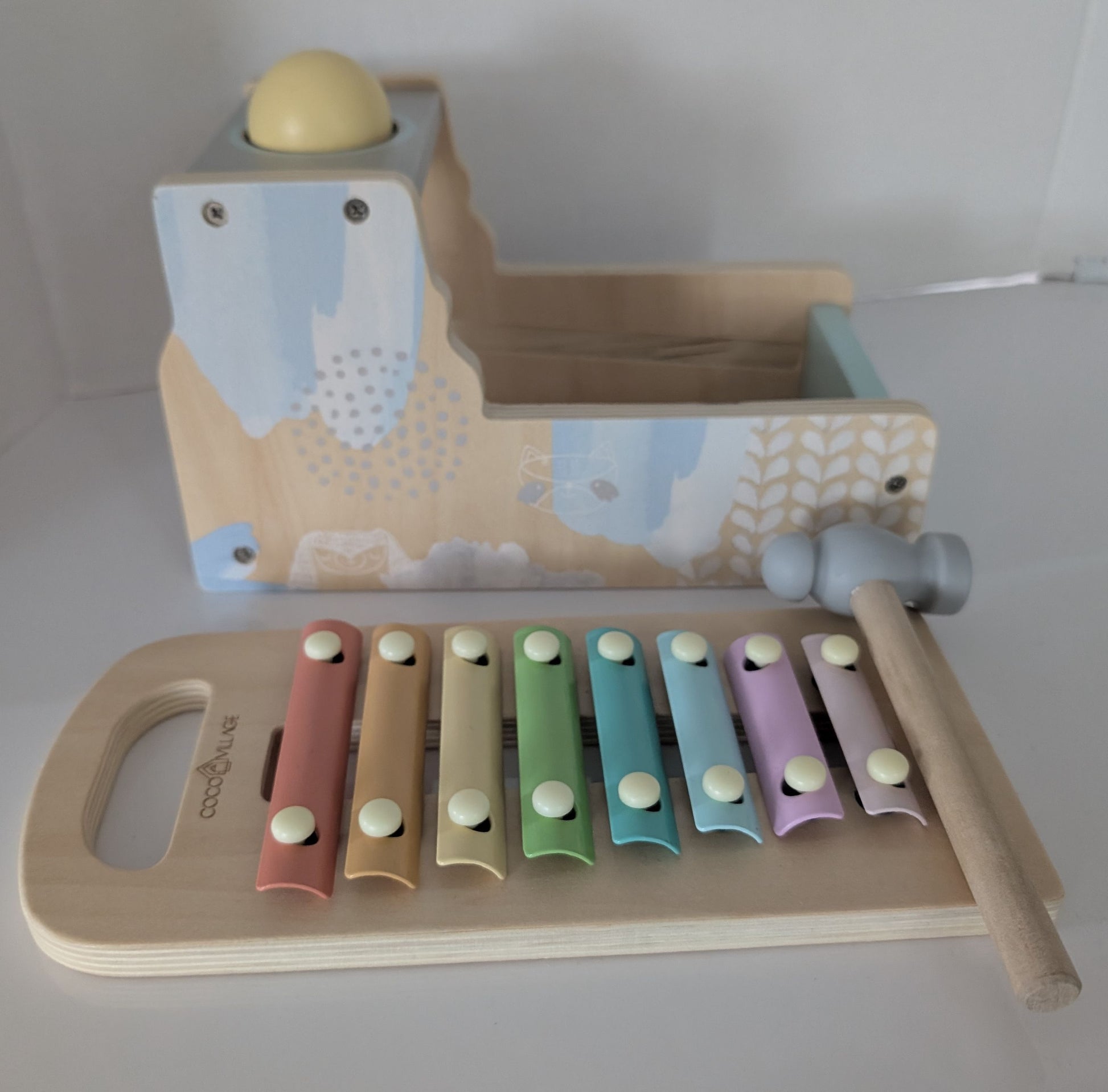 Xylophone en bois de marque Coco Village. Conviens aux enfants de 1 à 4 ans.