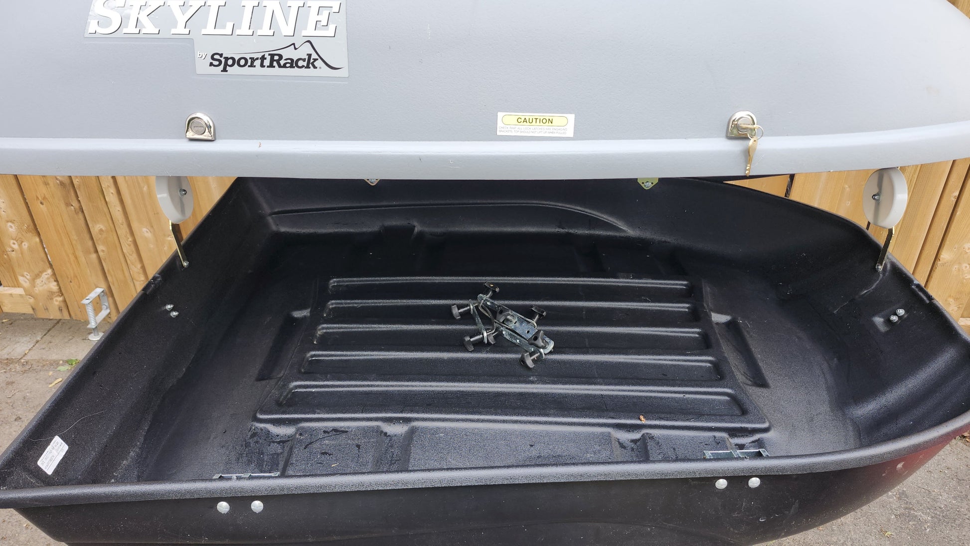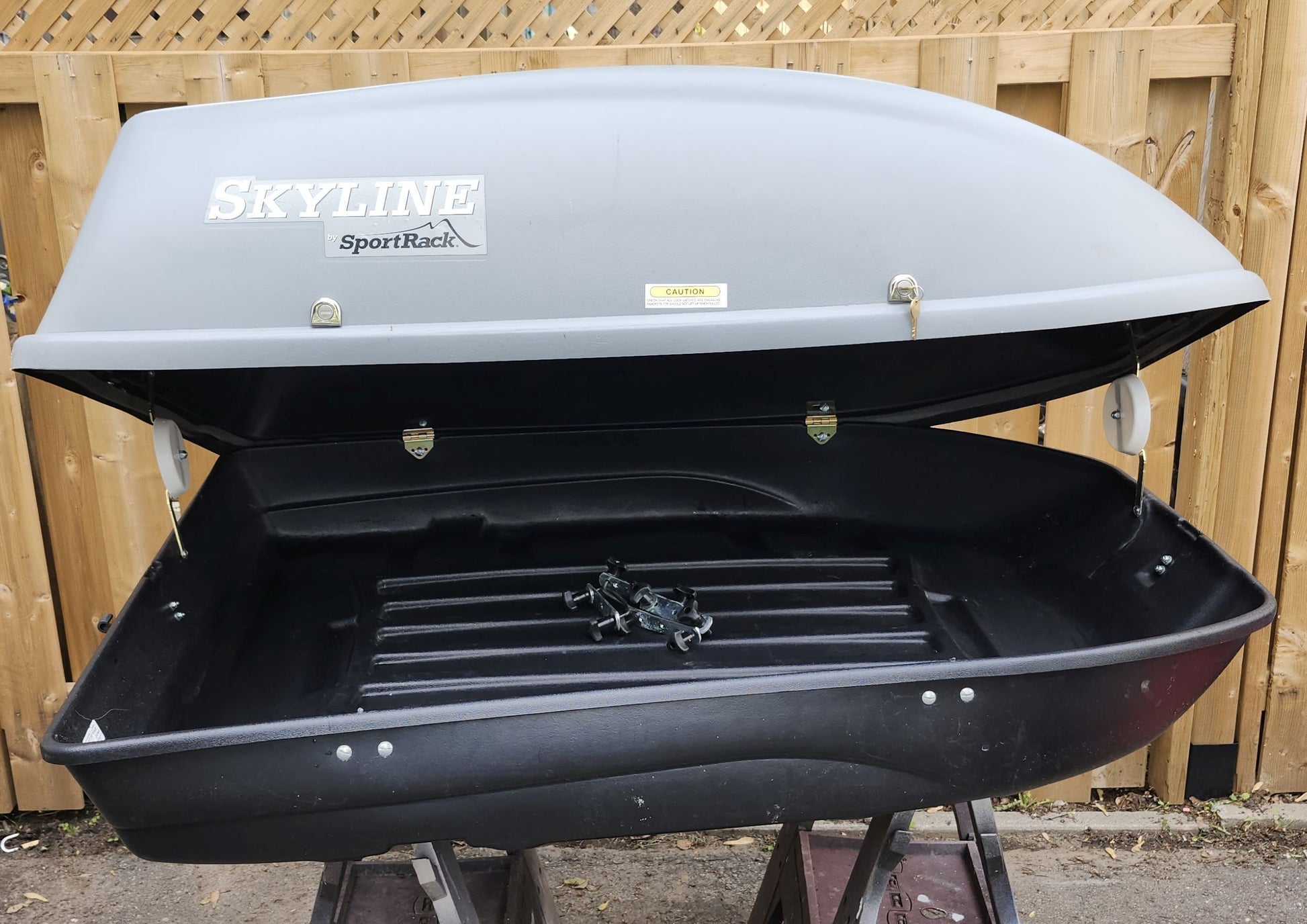 Boîte de toit de marque SportRack. Vient avec deux clés. Mesure 55'' de longueur x 37'' de largeur x 18'' de hauteur. Poids maximal 100 lbs.