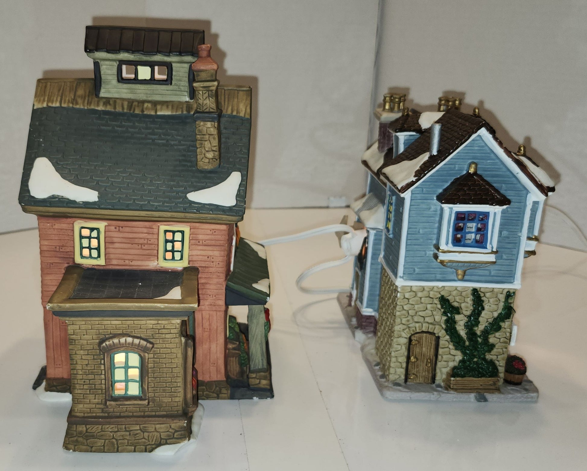Village de Noël en céramique de Arline's Pie Shop avec Marché. Peut y avoir une lumière en-dessous pour l'illuminer.