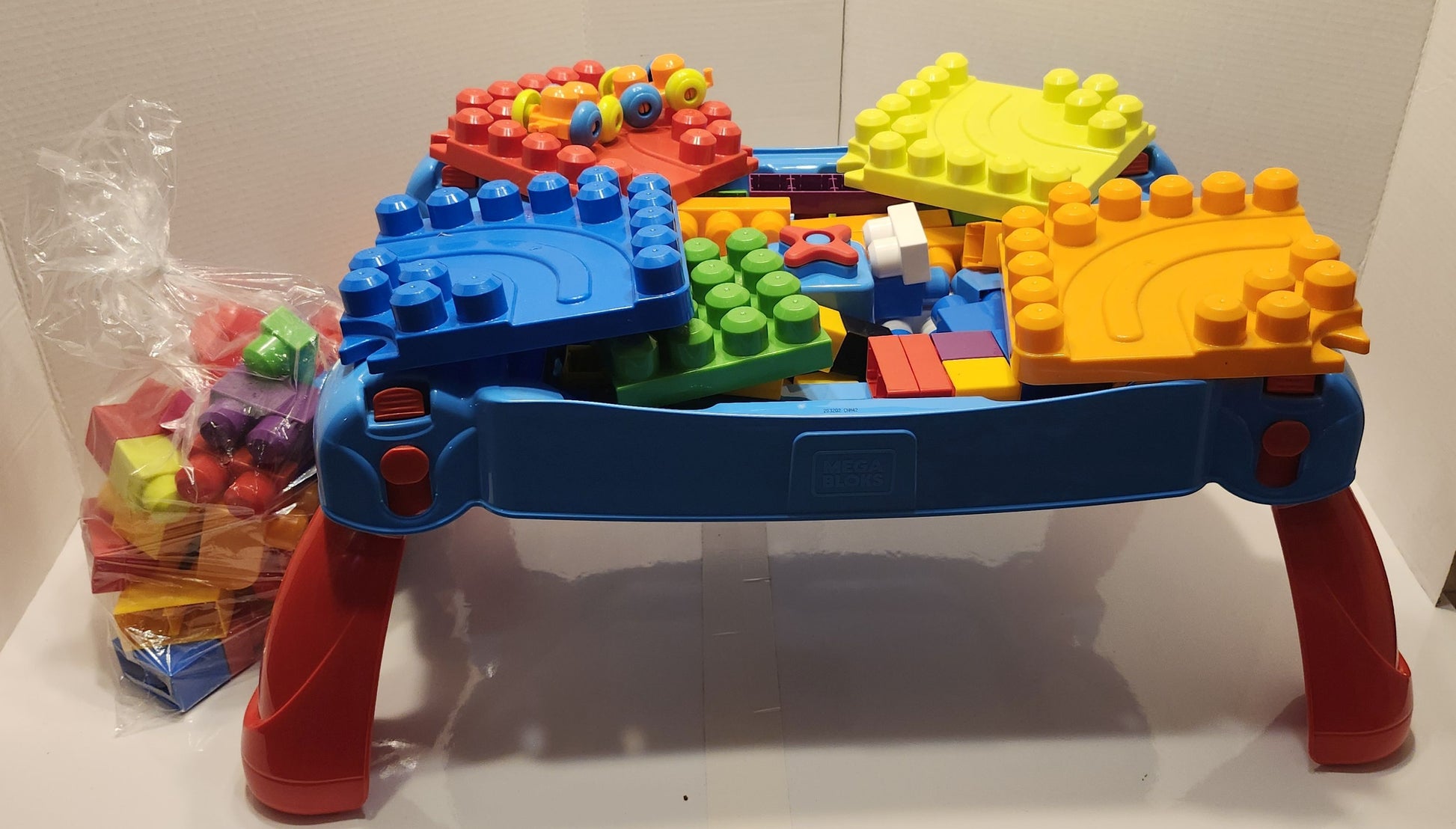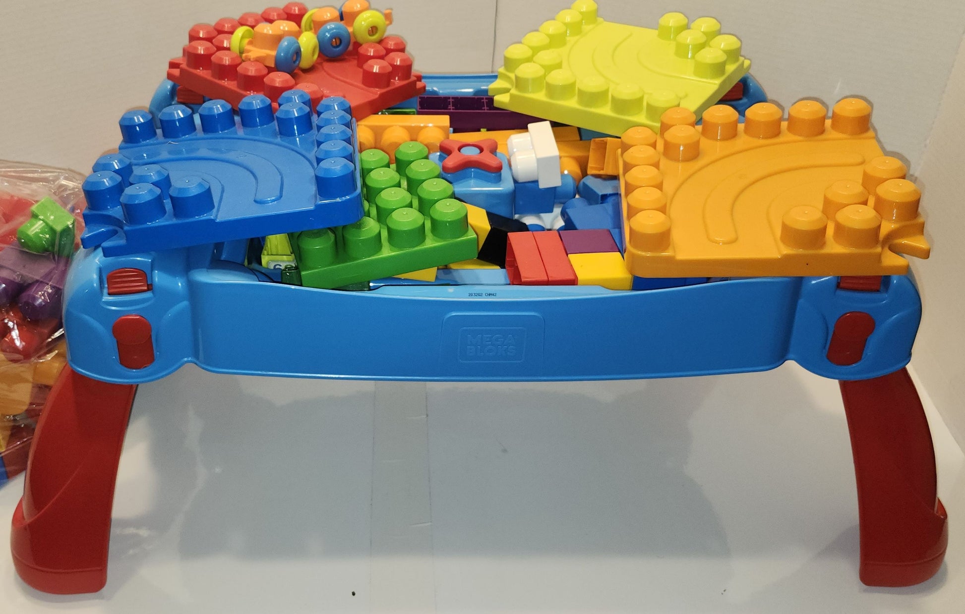 Table de marque Megabloks avec plus de 50 bloks.